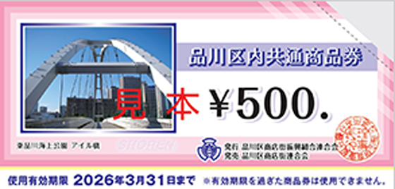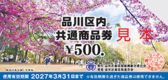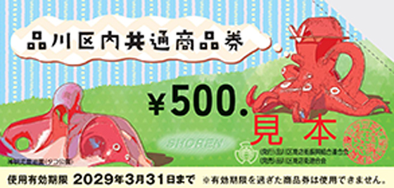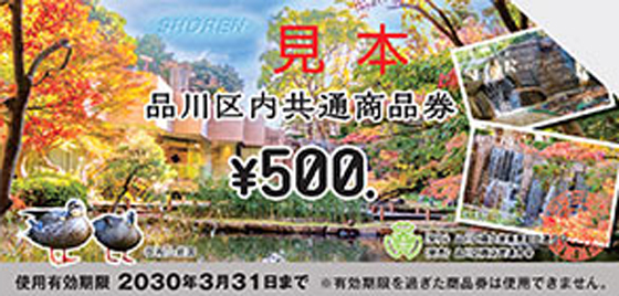 品川区では、地域密着型店舗の活性化を目指し、平成元年(1989年)11月から共通商品券事業を続けています。毎年春と秋には、通常よりもお得なプレミアム付商品券も発行しており、これらを合わせると年間13.6億円が区内で流通しています。