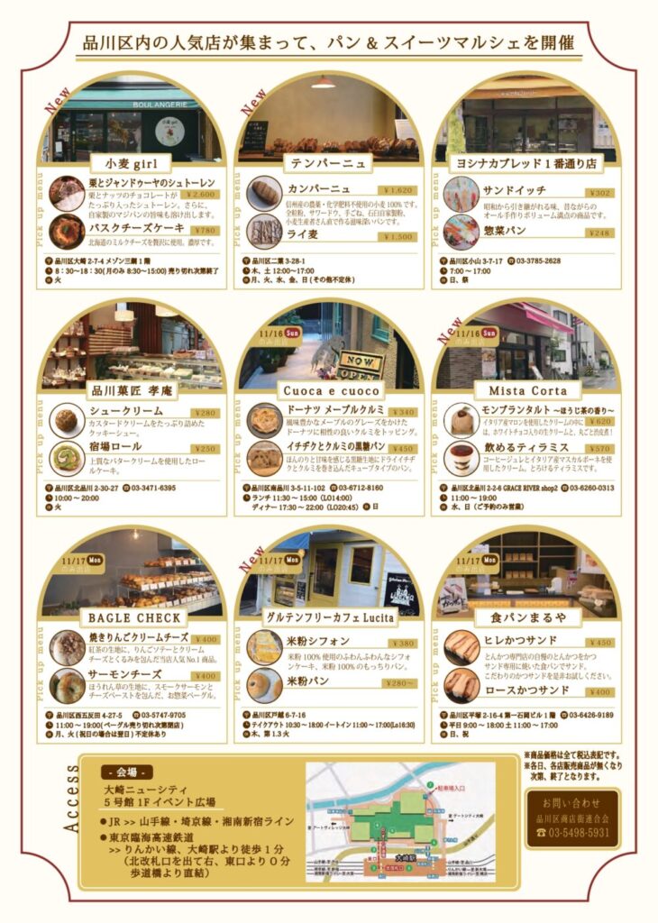 品川区内の人気店が大崎ニューシティに大集合。パンやスイーツを販売します。